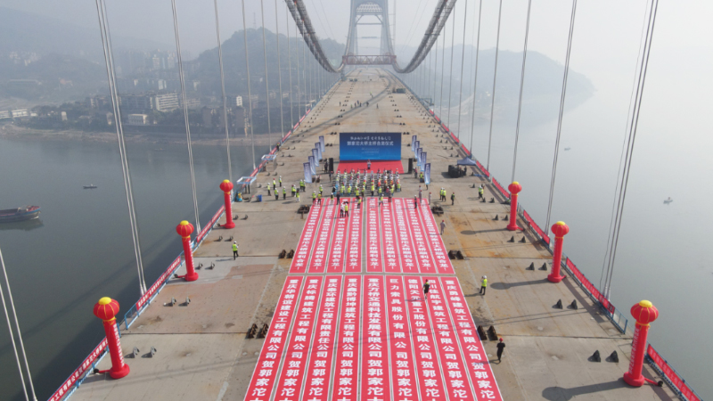 3月15日,隨著最后一節(jié)段鋼桁梁S8的成功吊裝,全國(guó)最大跨度公軌兩用懸索橋——重慶郭家沱長(zhǎng)江大橋成功合龍,該橋采用巨力索具預(yù)應(yīng)力錨固系統(tǒng)。郭家沱長(zhǎng)江大橋項(xiàng)目是重慶市級(jí)重點(diǎn)工程,也是重慶快速路“六縱線”跨長(zhǎng)江節(jié)點(diǎn)工程。該項(xiàng)目線路北起江北郭家沱,南接南岸峽口鎮(zhèn),全長(zhǎng)6.2公里,由花紅灣立交、郭家沱長(zhǎng)江大橋、峽口立交三部分組成。