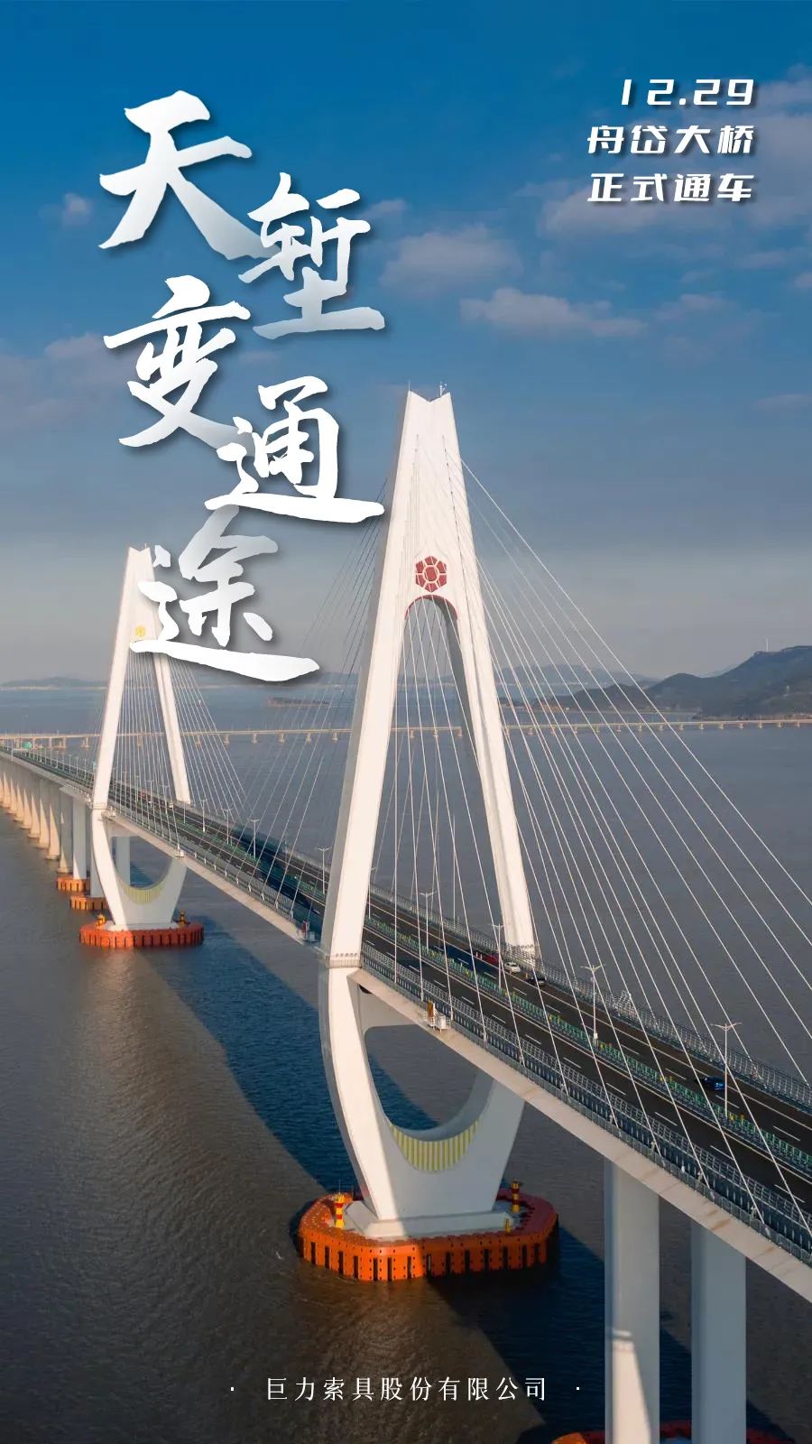 舟岱大橋是中國最長的連島高速公路和規模最大的跨海橋梁群,也是寧波舟山港主通道項目的重要組成部分,巨力索具承接了大橋斜拉索安裝工作,全橋長約26公里,起點順接富翅至岑港段,在岱山雙合登陸,成為連接舟山本島與岱山島的唯一海上通道。