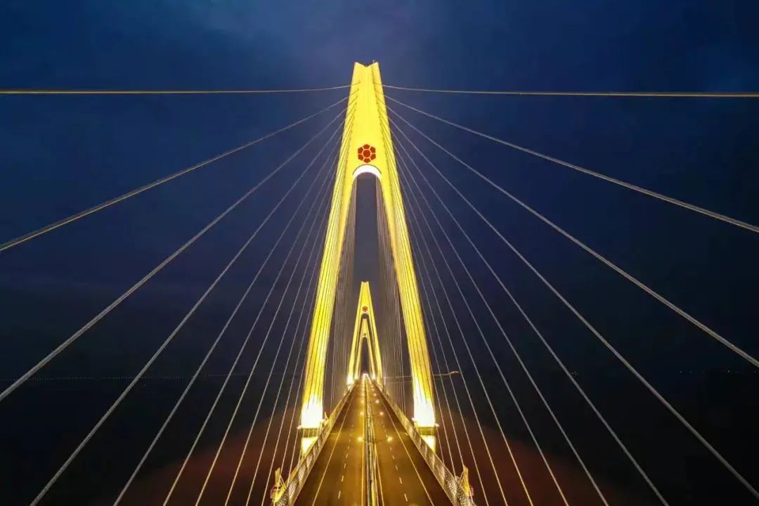 舟岱跨海大橋主通航孔橋為三塔雙索面鋼箱梁斜拉橋,全長1630米,主跨2×550米,是在綜合考慮船舶通航、航空限高及建造成本等多重要素下的最合理設計方案,主跨跨徑創外海橋梁世界之最。巨力索具參與制造了大橋斜拉索的安裝工作,全橋共計196根斜拉索,7種規格,最大規格為7*283,單根重量約(不計錨具)28噸。全橋斜拉索共計2063噸。舟岱大橋所處的海域,氣候環境復雜,建設條件惡劣,有效作業時間短,施工難度極大,安裝期間又逢春節,疫情爆發,施工人員春節期間加班加點趕工,克服困難確保進度,從合同簽訂到拉索安裝完成僅用四個月時間。