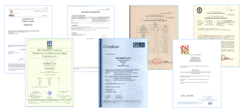 巨力索具致力于纜繩和繩網領域的技術創新,為客戶提供高品質的產品。巨力纜繩產品通過了中國船級社CCS認證、美國船級社ABS認證、英國船級社LR認證、法國船級社BV認證、德國船級社GL認證、挪威船級社DNV認證等一系列權威認證。