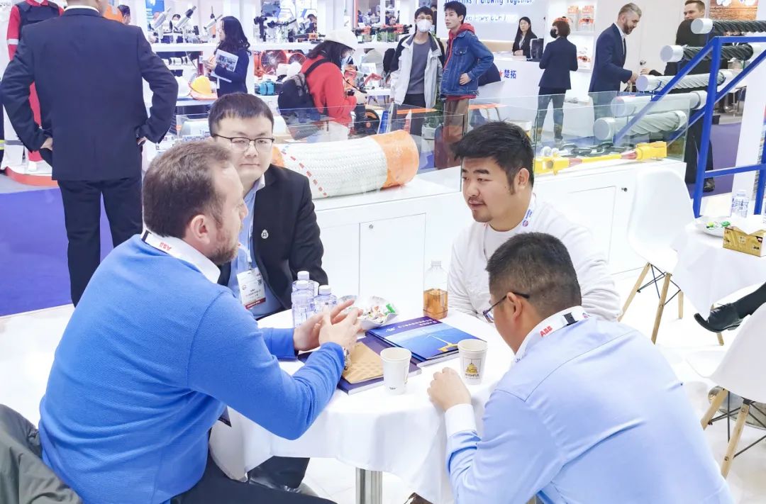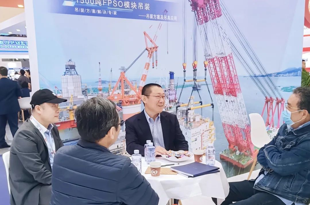 總裁楊超蒞臨現場指導工作并與客戶密切交談,聽取了國內外客戶的市場反饋,并與客戶交流巨力索具智能化、數字化技術在海洋領域的應用與成就,深層次探討行業發展趨勢與合作方向。