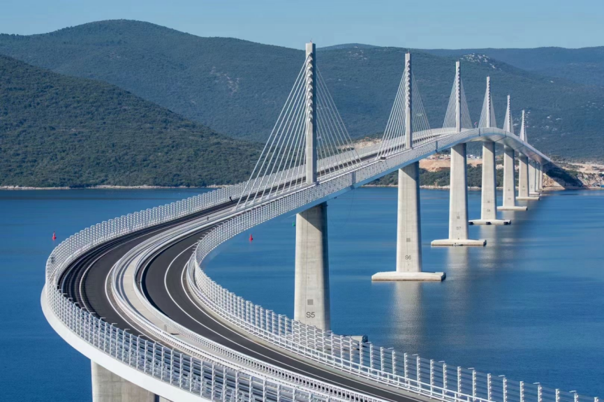 克羅地亞佩列沙茨大橋是連接克羅地亞本土與佩列沙茨半島的橋梁工程,也是中克兩國之間規模最大的基建項目。佩列沙茨大橋為六塔鋼箱梁斜拉橋,橋梁全長2440米。項目采用歐洲標準建設,是克羅地亞最大的國家戰略工程,巨力索具承接該項目810噸橋面鋼箱梁吊具。