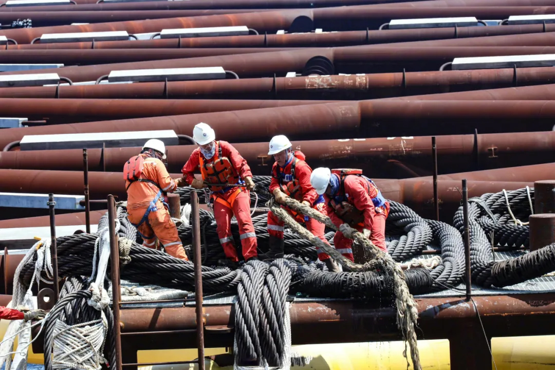 △ 采用巨力索具無接頭繩圈為導管架“扶正”