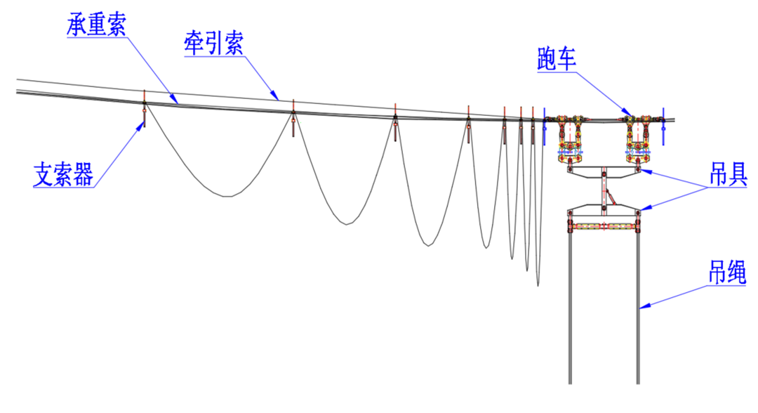 纜索吊裝系統主要由塔架支撐系統、錨固系統、繩索系統、天車和支索器系統、防雷系統等組成,并搭載了數字化工程管控平臺,通過自動監測設備、監控設備、外鏈系統等智慧工地的構建,實現對吊裝現場檢查全方位時時監控,極大地提升了施工項目安全生產的總體管控能力。