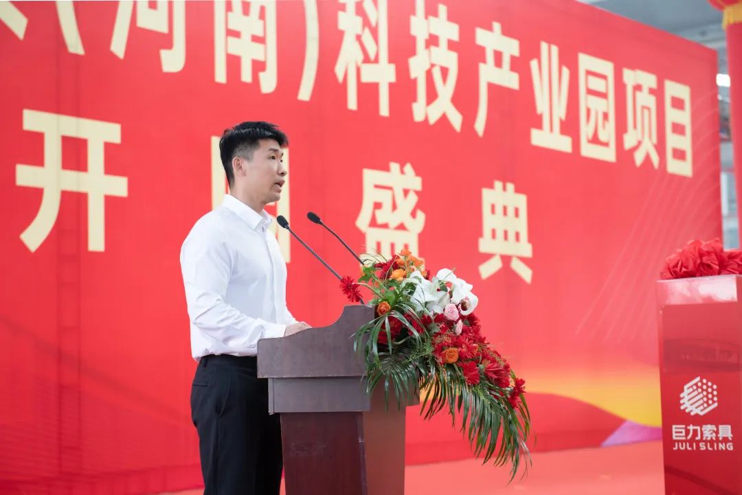 楊將在開園儀式上致賀詞,孟州是太行黃河融合之地,物華天寶,人杰地靈,是一座有活力、有魅力的城市。巨力索具是巨力集團(tuán)主產(chǎn)業(yè)板塊,在孟州投資建廠,是集團(tuán)公司戰(zhàn)略發(fā)展的重要決策,對此項目,會始終保持高度關(guān)注,提供保障,做好后盾,全力支持項目做大做強(qiáng)。未來,巨力集團(tuán)的發(fā)展 會和孟州這座城市融為一體,扎根這片熱土,依托集團(tuán)公司平臺資源,共建共享,共謀發(fā)展!